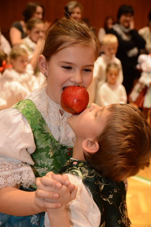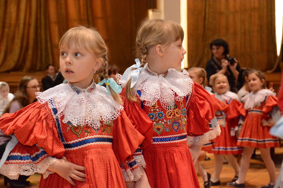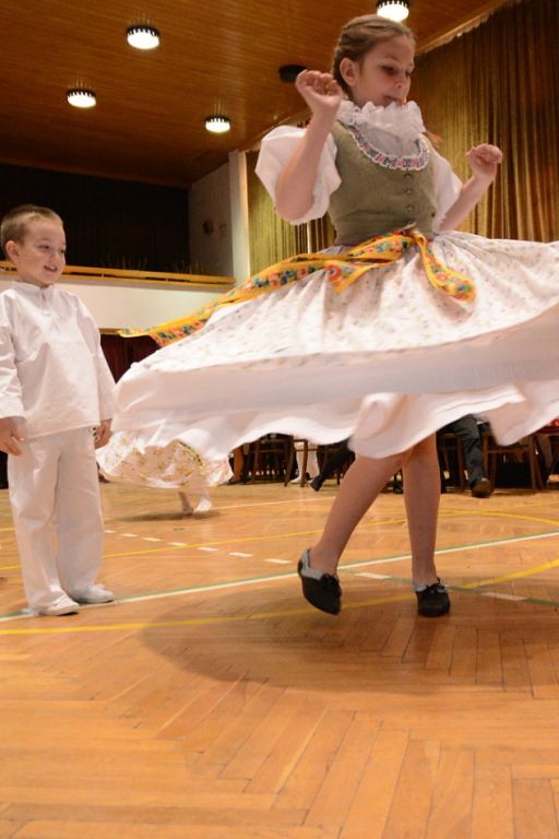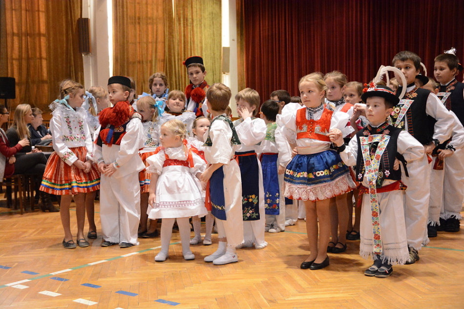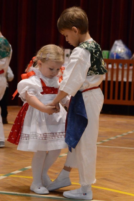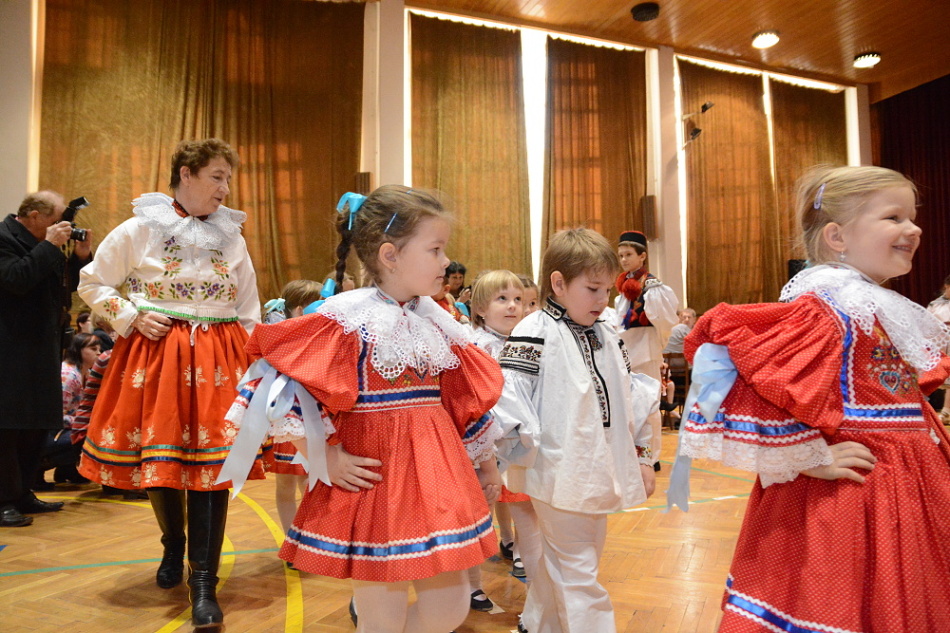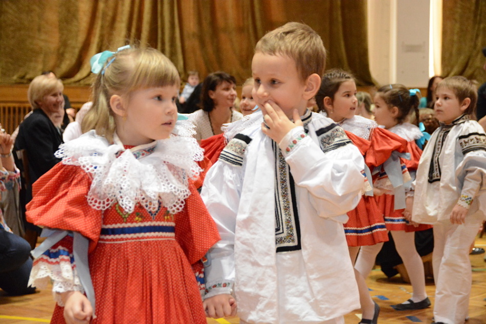 Mezi sto padesáti dětmi v krojích se nemísili pánové ve společenských oblecích a ženy ve večerních toaletách, ale od stolů nebo z balkonu je sledovali při tanci či zpěvu jejich rodiče a prarodiče.