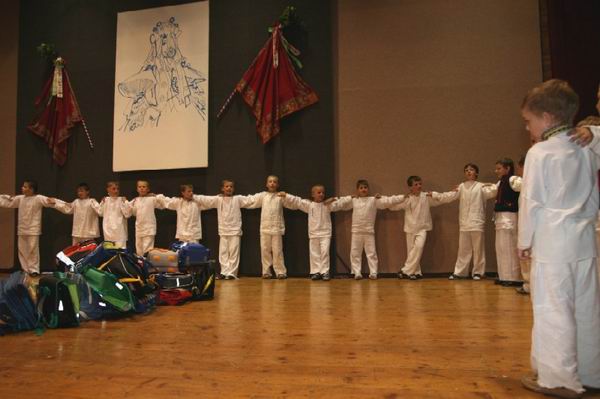 Samozřejmě své místo na pódiu měli i kluci, ty školní tašky sloužily jako rekvizity a - divili byste se - pomohly i k tomu, že kluci předvedli jízdu králů. Vystupujících bylo tolik, a jejich radost z hraní taková, že jsem byl naměko. A to jsem ještě v té chvíli nevěděl, že učitel Ondra zakládá i Mikronivničku pro opradu nej nej nejmenší děti. Nedá mi to, abych tady neuvedl něco z toho, co slyšeli od učitele Ondry diváci ve Vlčnově: