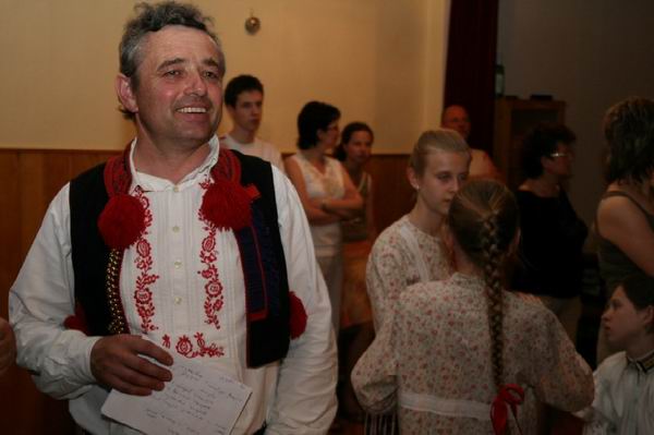 Předseda verbířské poroty Josef Bazala se Starého Města. Fešák, co říkáte? Jen pro zajímavost, druhý den jsem se byl podívat v Kunovicích na soutěž dětských verbířů a také tam nechyběl. Když odbočím do Kunovic, strašně se mi líbilo, jak se tamní porota, včetně pana Bazaly, věnovala malým klukům, jak jim vysvětlovala, v čem se mají zlepšovat, jak mají na sobě pracovat. To byl, vážení čtenáři, požitek.