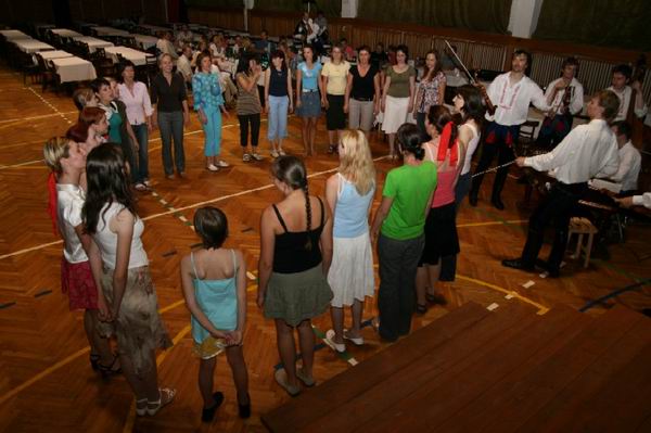 Pěkná tečka za pátečním dnem. Když už byl sál téměř prázdný, sešly se kolem muzikantů tyto holky a zpívaly jednu písničku za druhou. Dovolte mi v této souvislosti jednu radu. Pokud jdete na besedu u cimbálu, nespěchejte domů, okamžiky takového nočního zpívání jsou ty nejlepší.