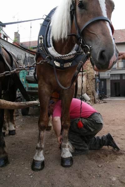 Ona předcházející fotka s kávou trošku mate. Práce s koňmi je především o práci, pan Konečný ještě dělá poslední úpravy, aby dva z jeho koní mohli do Vlčnova po svých.