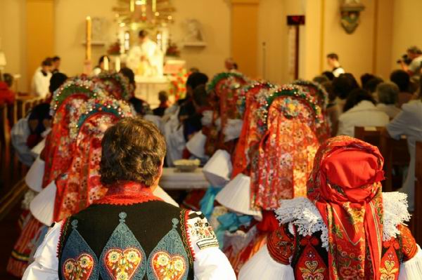Marie Křapová. Fotil jsem ji a nahrával ráno, kdy vycházela z kostela. Chodí do něj každý den. Celý život. Jako mnohé "tetičky" tady ve Vlčnově a na celém Slovácku. Zastavuji se s nimi, protože oni už jsou poslední generace "starého světa". Jaký svět přijde po nich nikdo netuší. Paní Křapová chodí také každý den v kroji (tento má skoro celý život), i když v takovém svátečním jen v neděli. I to bude už brzy minulostí. "V našem ročníku choďjá eště dvě, ostatní sů nemožné," říká. Slovem nemožné myslí ty ženy, které chodí v "pánském". A v pánském tady na Slovácku znamená, že jsou oblečené prostě v klasickém oblečení, které můžete vidět kdekoliv.
