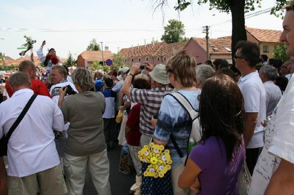 Přiznám se, že na toto si trošku těžko zvykám, ale budiž. Součástí Jízdy králů je také vybírání peněz, přispívá každý, na koho míří vyvolávání některého z legrůtů. Výjimkou nebyl ani tento Japonec, který jinak velmi pečlivě celou Jízdu dokumentoval. Slyšel jsem, že byl členem delegace zahraničních odborníků, kteří byli na odborném setkání v nedaleké Strážnici. Nemám tuto informaci potvrzenou, ale na odborníky se ještě zeptám. Stejně jako velmi toužím po povídání se zahraničními turisty, kteří se na jízdu také přijeli podívat. Věřím, že brzy vám jejich pohled zprostředkuji. No řekněte, nezajímá vás, jak oni tuto tradici vnímají a jak se dívají na její provedení?
