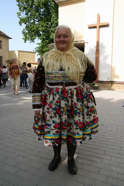 Další radostné poznání. V řadě stánků s lidovými výrobky byly i tyto dvě ženy z Lidové tvorby v Uherském Brodě. Upřímně se přiznám, že jsem ani o existenci toho podniku nevěděl. Řada věcí, spojených s lidovým řemeslem, totiž tady na Slovácku zkrachovala, a najednou toto. Dozvěděl jsem se, že Lidová tvorba je družstvo, zaměstnává kolem 70 (!) lidí, a práce je prý dost. Ve Vlčnově obě ženy nabízely panenky v krojích, a jak tvrdily, zájem o ně pořád je. Snad můžu prozradit, že jednu krojovanou panenku darovaly i paní Dolores. Přál bych vám vidět její radost.